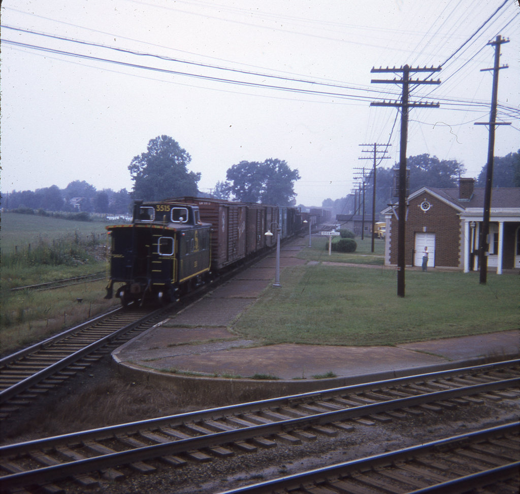 A C&O freight train led by a mix of GP7’s and GP9’s rumbles past the depot in Doswell. The date is July 19, 1969 (Photographer unknown. From a slide in the collection of Larry Z. Daily.)