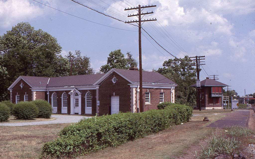 This image was taken in 1983. This is the north side of the building. The RF&P mainline is to the right and the Piedmont Sub is in the background. (Photographer unknown. From a slide in the collection of Larry Z. Daily.)