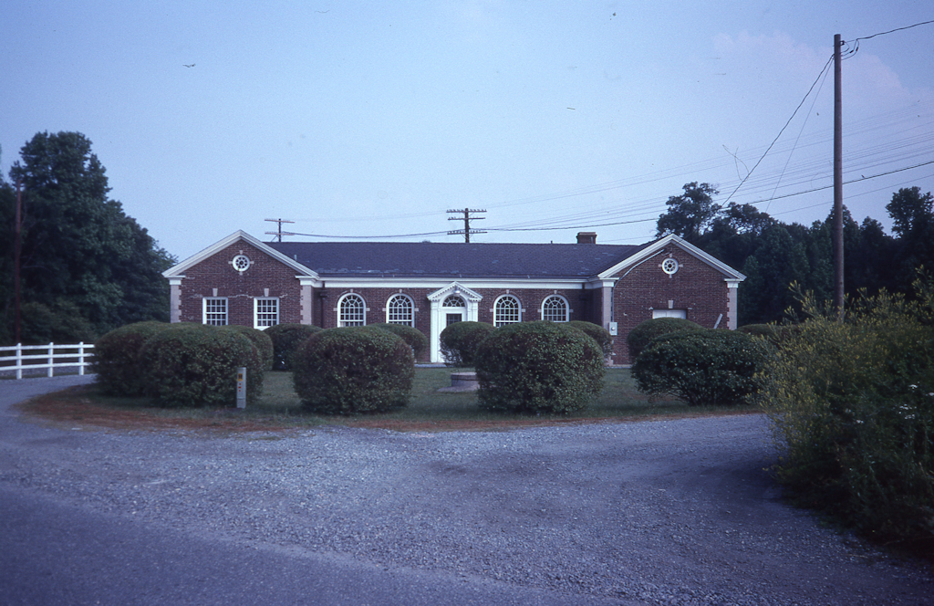 The C&O and the RF&P also maintained a joint passenger station at Doswell. The original depot was destroyed during the Civil War and was replaced by a temporary building (described as “commodious”) and water station. In 1870 a permanent station was built that was itself replaced in 1907 with a station that, to my eyes, bore a family resemblance to the station at Gordonsville. The C&O retired the stock pen in Doswell in 1926. The wooden station burned in 1927. Sanford Terry, resident of the area, writes, “I rode my bicycle to Doswell to view the smouldering ashes. Nothing was left of the old building except two brick chimneys.” The burned station was replaced by the red brick, Georgian style one pictured below. By 1970 passenger trains only stopped at Doswell with advance warning from the station agent. Outbound freight traffic in 1970 was mostly pulpwood and wood chips. A veneer company and an excelsior plant were located in Doswell.