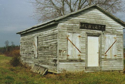 One of the most exciting moments of my first research trip to the Piedmont was when I sighted this building hidden among the weeds. It stands about 50 to 60 feet from the tracks and it looks as though it may be in use as a storage shed. Because of the station sign I thought it was the Hewlett station, but that now appears to be incorrect. According to both Mr. Andrew Smith and Mrs. Marjorie Moore the Hewlett station had been a larger brick building. This building was built as a store when the original store, which stood between this building and the tracks, burned. The station sign was hung by the current owners. (1998 photo by Larry Z. Daily)