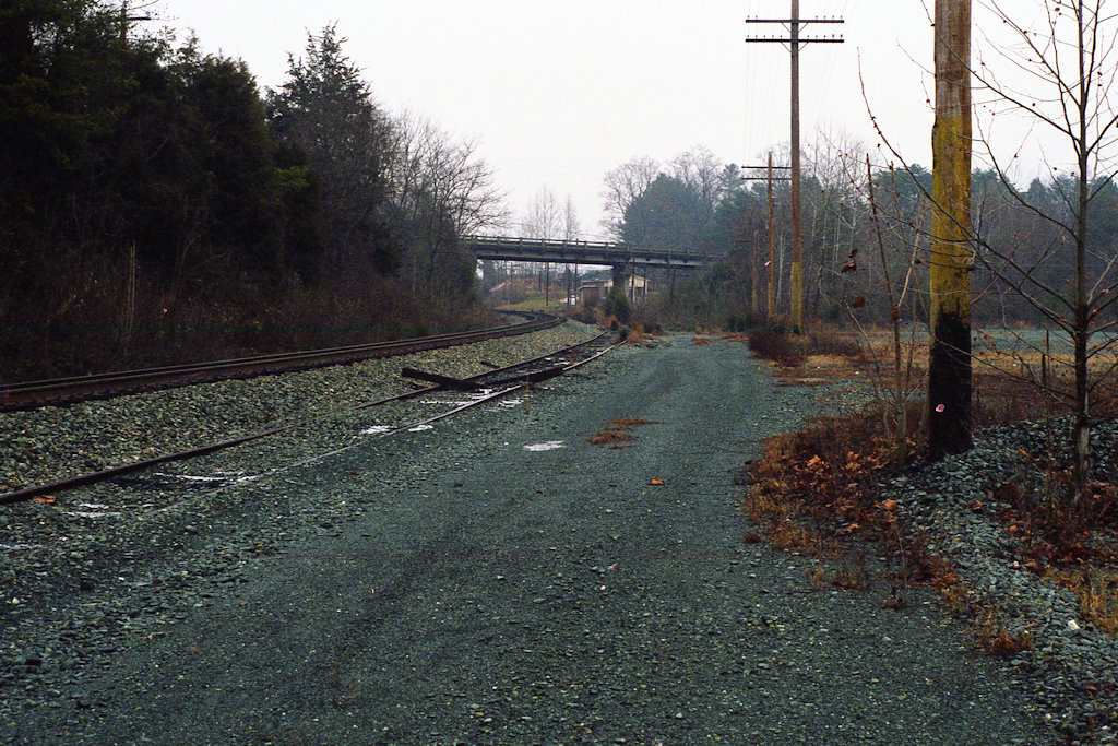 [NEW] This is the east end of the siding in Shadwell (track number 900). The depot stood on the other side of the bridge. (December 28, 1998 photo by Larry Z. Daily)