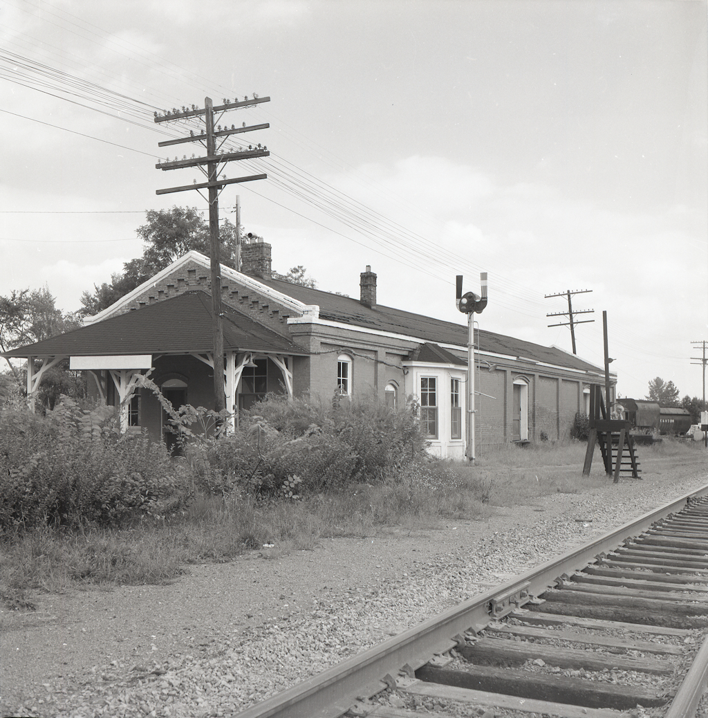 [NEW] The Beaver Dam depot on September 15 of 1974. The lettering has faded from the station sign and there’s an MOW water tender on the siding behind the building. I suspect that that’s the photographer’s child climbing on the train order stand. (Photographer unknown. From a negative in the collection of Larry Z. Daily)