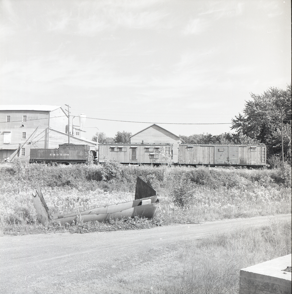 C&O track charts indicate that the mill and the freight house once shared a siding. The siding is visible in this photo (and the freight house photo above). (Photo circa 1990 by Mark Herrmann, used with permission.)