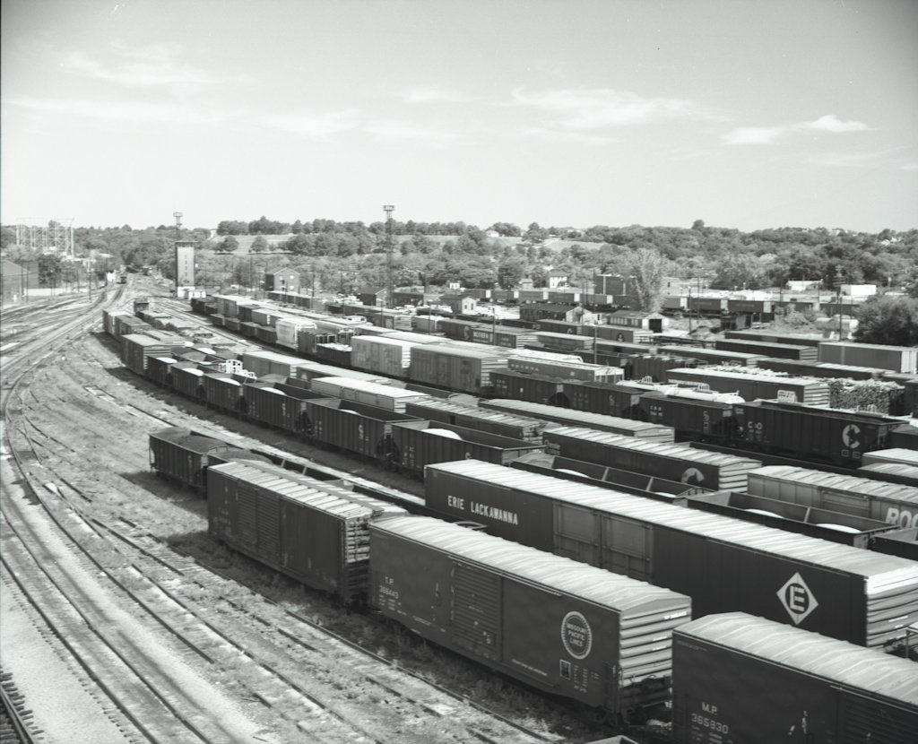 [NEW] This photo, along with the next three, of Fulton Yard were not attributed to C. H. Cox by the person who sold them to me, but I suspect that they may have be his photos. This is Fulton yard on September 13, 1975. (Photographer unknown. From a negative in the collection of Larry Z. Daily)